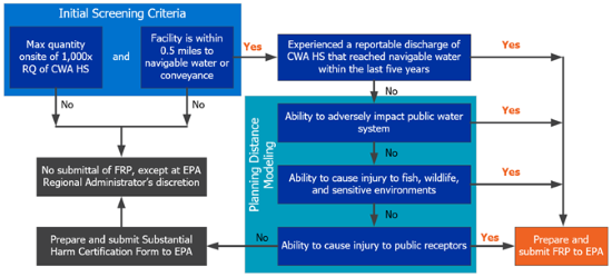 If it is determined that the facility is within 0.5 miles of navigable water and stores a CWA HS above the FRP Thresholds, a facility is subject to the CWA FRP if any of the four criteria of substantial harm are met: